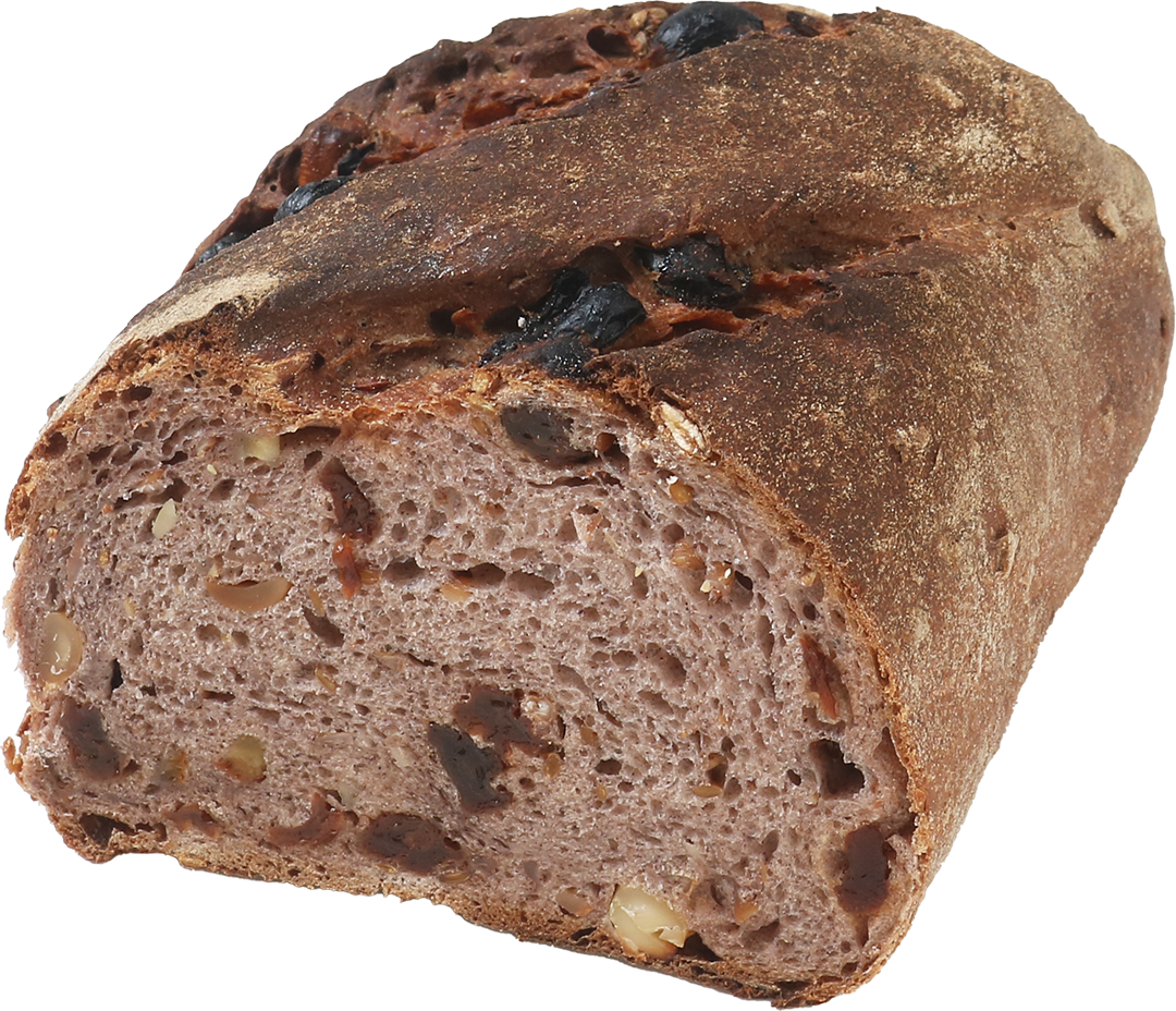 黒米粉のお餅のような湯種を生地に練り込みました。黒米粉の風味とプチっとした雑穀、ほんのり甘いレーズンとオレンジピールが爽やかで相性ぴったりです。